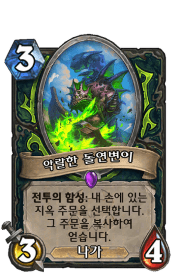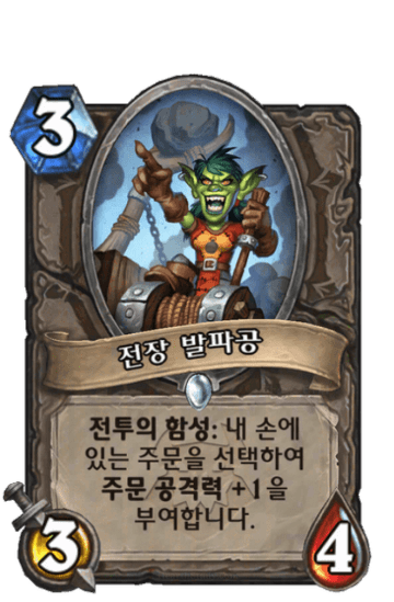 전투의 함성: 이 하수인 양옆에 있는 하수인들을 처치하고 그들의 공격력과 생명력을 얻습니다.