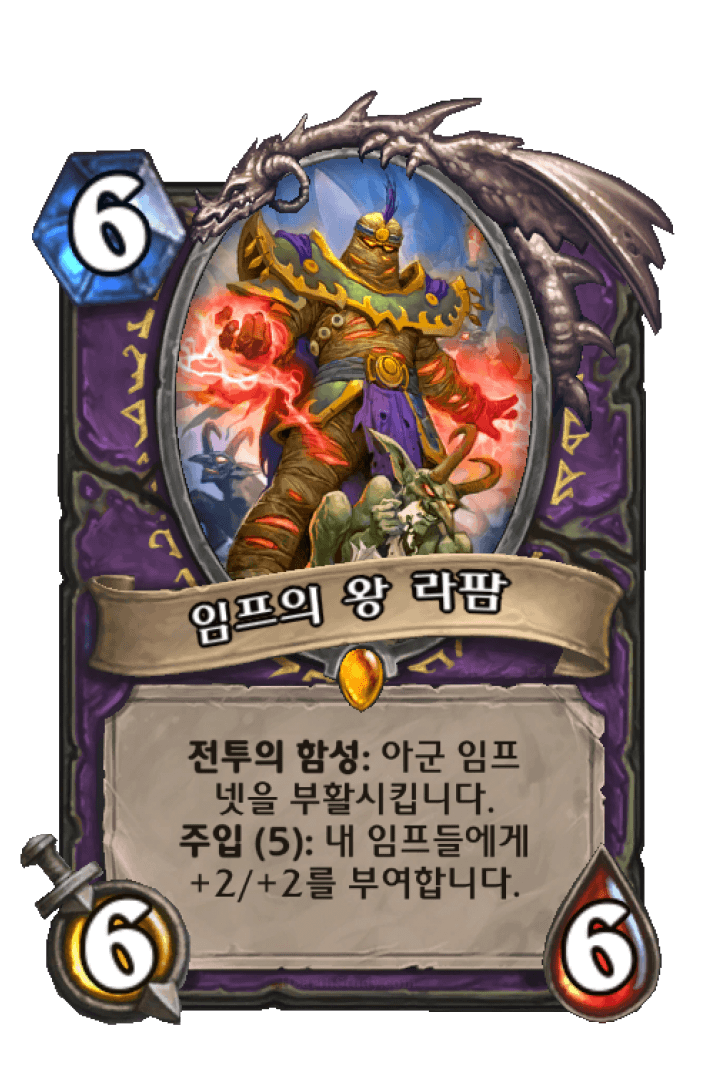 전투의 함성: 아군 임프넷을 부활시킵니다.주입 (5): 내 임프들에게 +2/+2를 부여합니다.