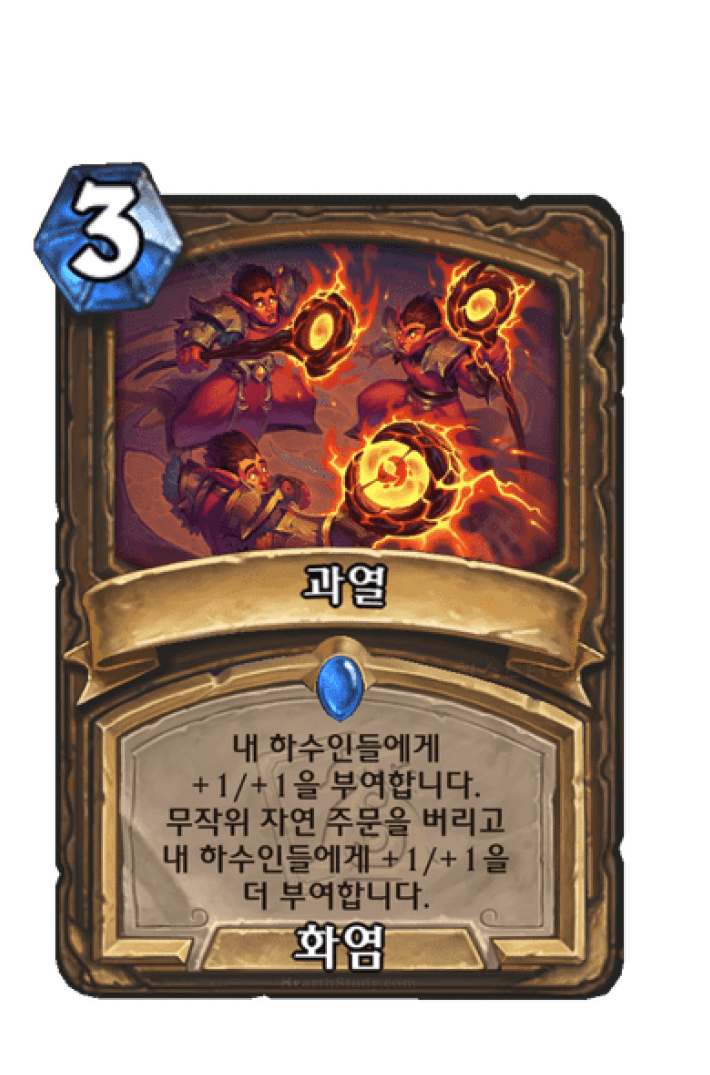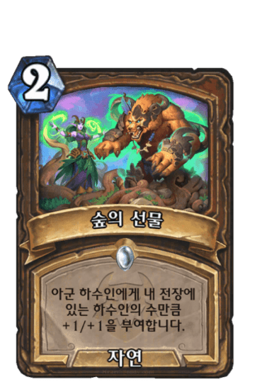 내 하수인들에게 +1/+1을 부여합니다. 무작위 자연 주문을 버리고