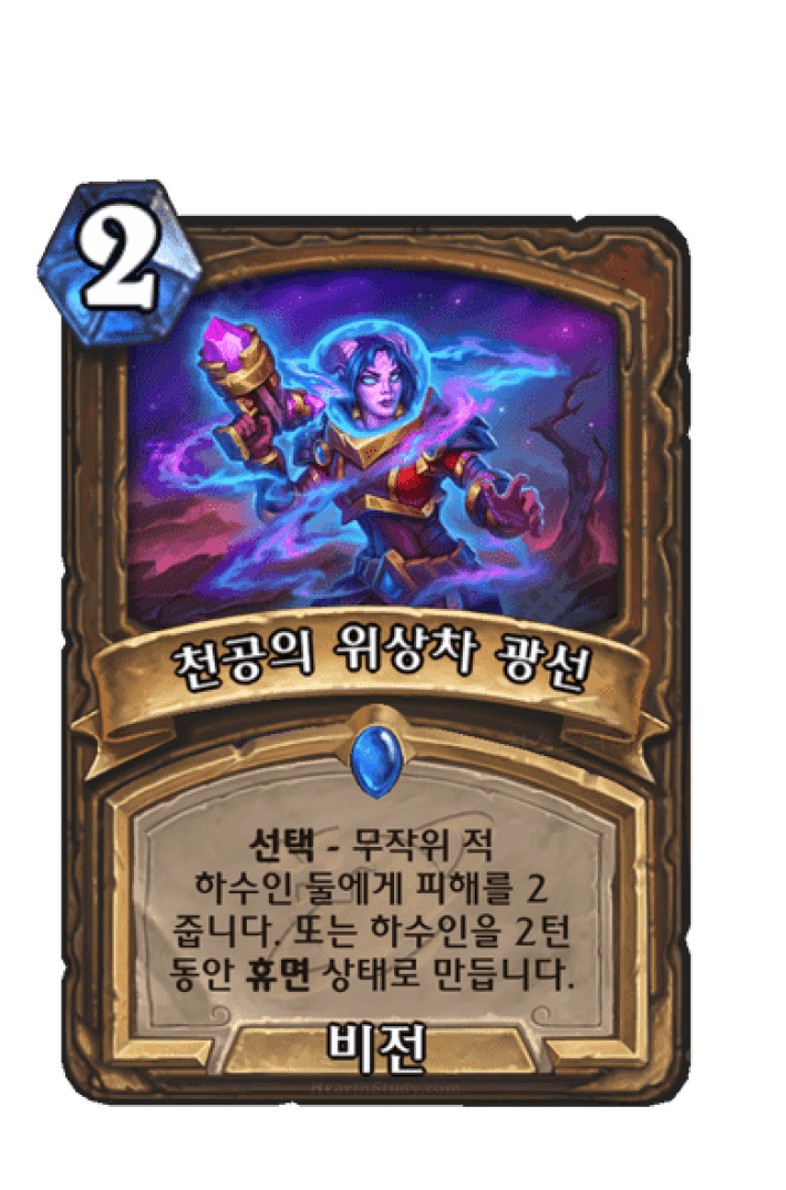 선택 - 무작위 적 하수인 둘에게 피해를 2 줍니다. 또는 하수인을 2턴 동안 휴면 상태로 만듭니다.