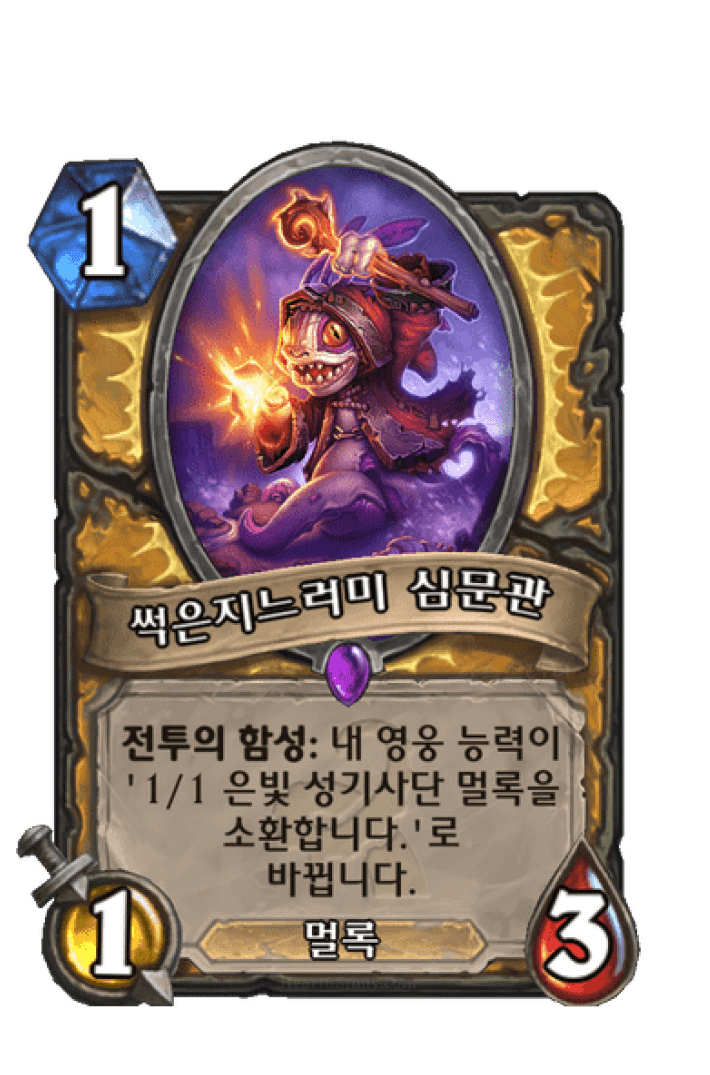 전투의 함성: 내 영웅 능력이 '1/1 은빛 성기사단 멀록을 소환합니다.'로 바뀝니다.