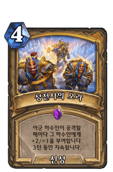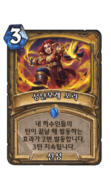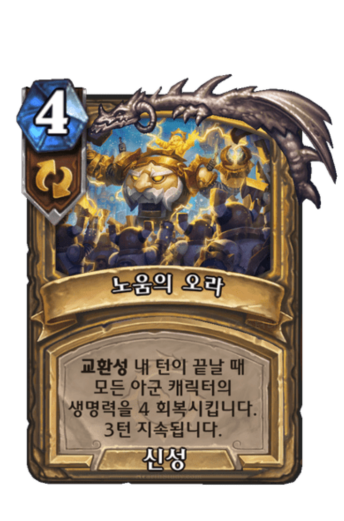 교환성 내 턴이 끝날 때모든 아군 캐릭터의생명력을 4 회복시킵니다.3턴 지속됩니다.