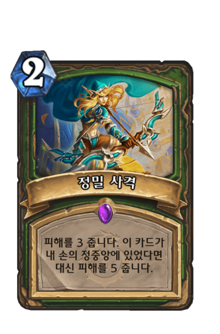 피해를 3 줍니다. 이 카드가내 손의 정중앙에 있었다면대신 피해를 5 줍니다.