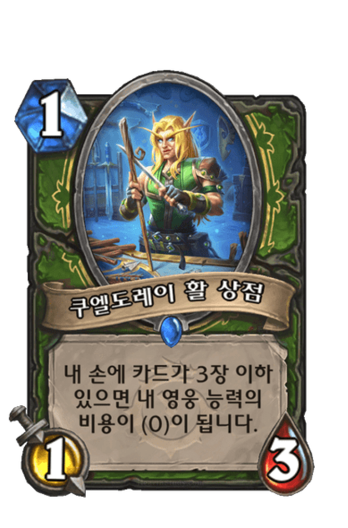 내 손에 카드가 3장 이하있으면 내 영웅 능력의비용이 (0)이 됩니다.