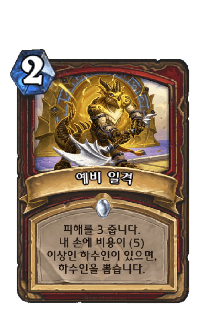 피해를 3 줍니다. 내 손에 비용이 (5) 이상인 하수인이 있으면, 하수인을 뽑습니다.