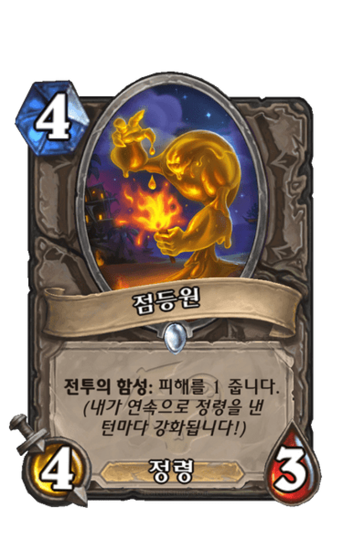 전투의 함성: 내가 이전 턴에 정령을 냈다면, 피해를 4 줍니다.