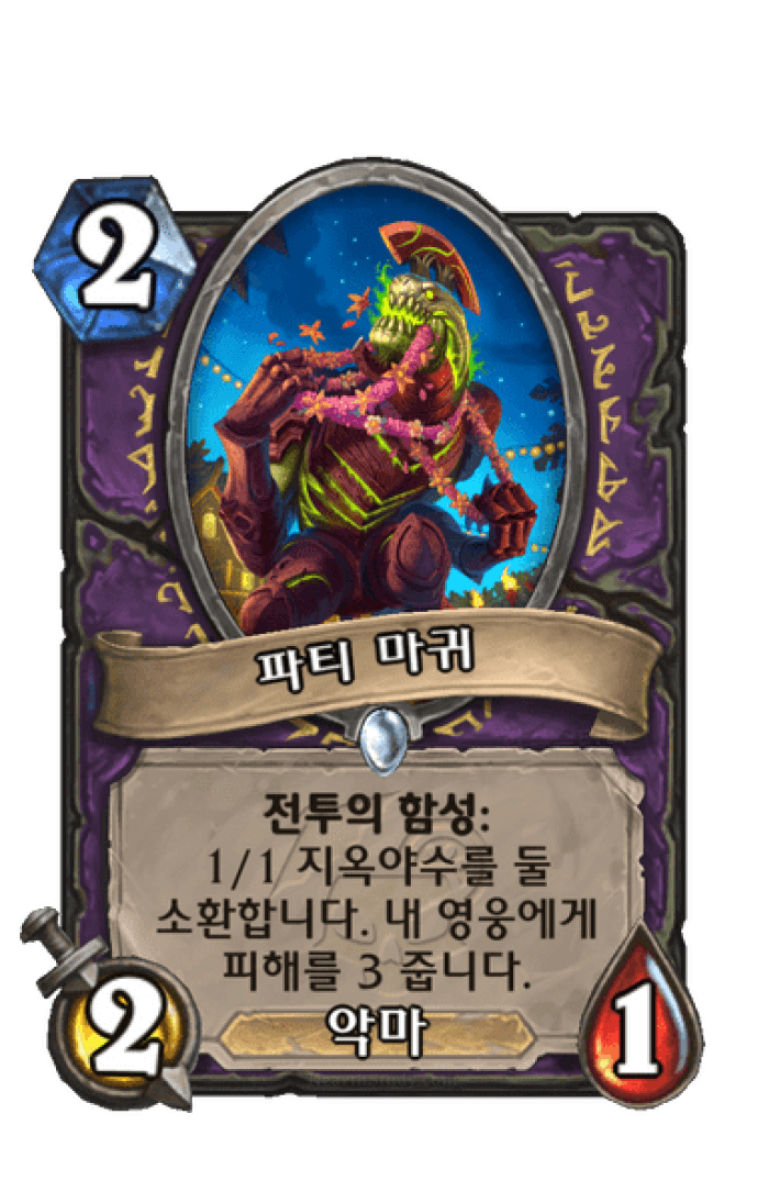 전투의 함성:1/1 지옥야수를 둘 소환합니다. 내 영웅에게 피해를 3 줍니다.