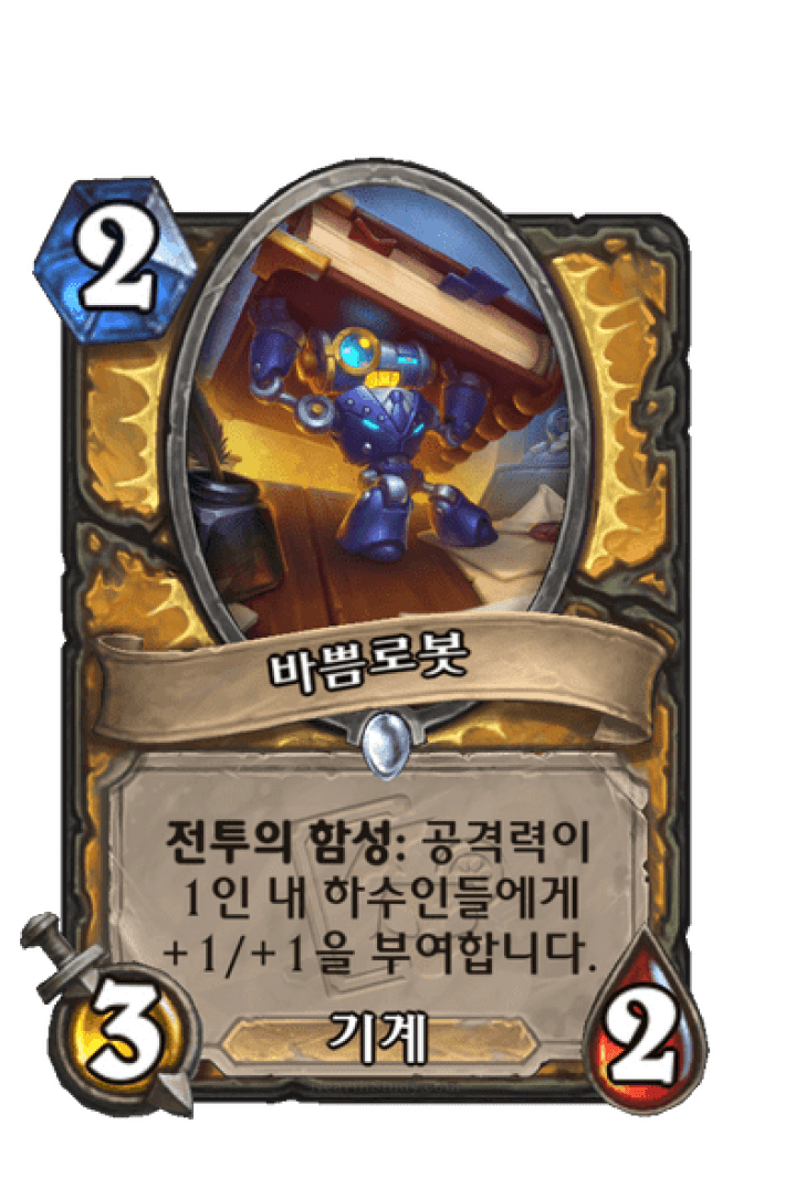전투의 함성: 공격력이 1인 내 하수인들에게 +1/+1을 부여합니다.