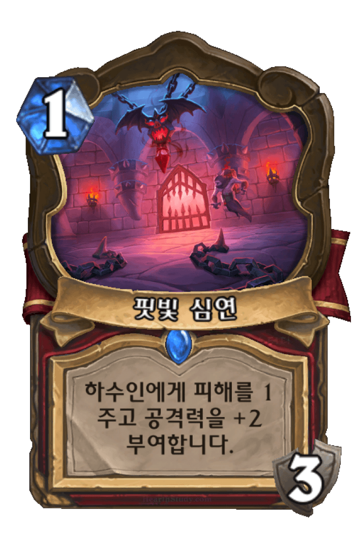 하수인에게 피해를 1 주고 공격력을 +2 부여합니다.