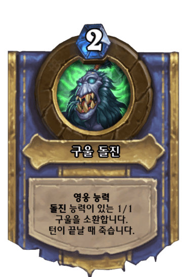 6.1.3 패치 업데이트 : 돌진의 비용이 3마나에서 1마나로 감소했고 능력이 다음과 같이 변경되었습니다. "아군 하수인 하나에게 돌진을 부여합니다. 그 하수인은 이번 턴에 영웅을 공격할 수 없습니다."