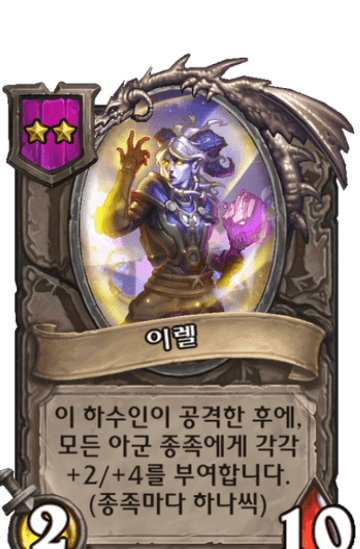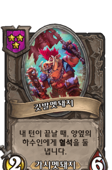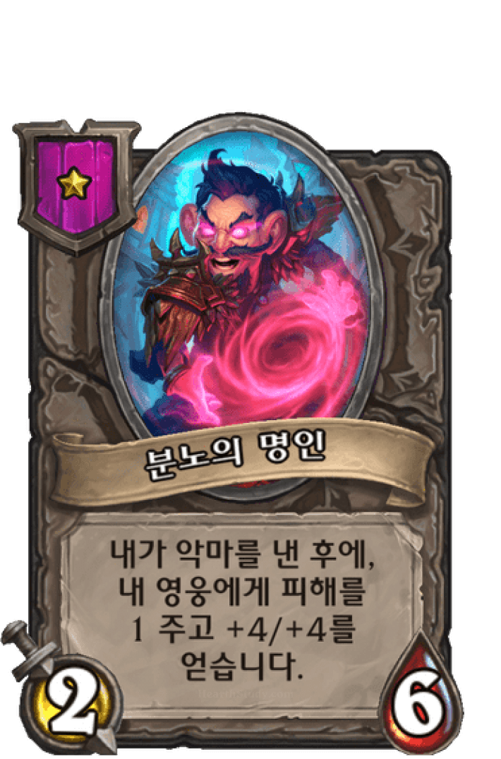 내가 악마를 낸 후에,내 영웅에게 피해를 1 주고+2/+1|1(을,를) 얻습니다.2번 발동합니다.
