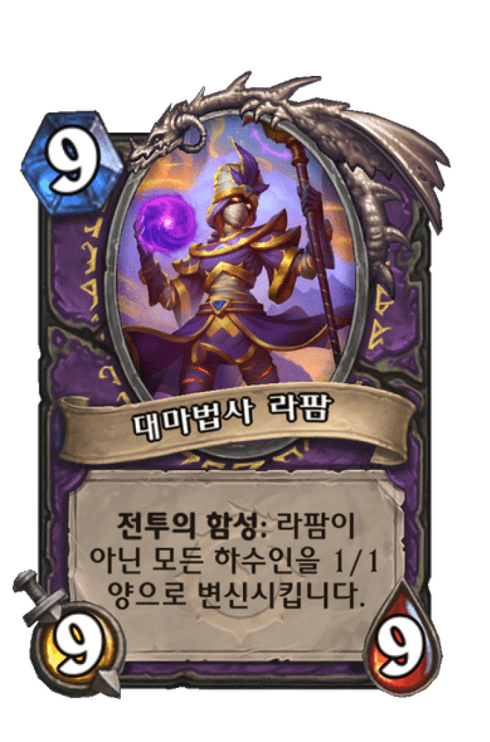 전투의 함성: 라팜이아닌 모든 하수인을 1/1양으로 변신시킵니다.
