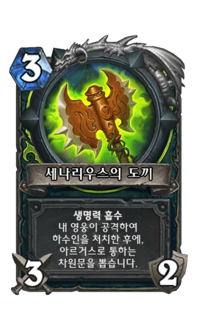 생명력 흡수내 영웅이 공격하여 하수인을 처치한 후에, 아르거스로 통하는 차원문을 뽑습니다.