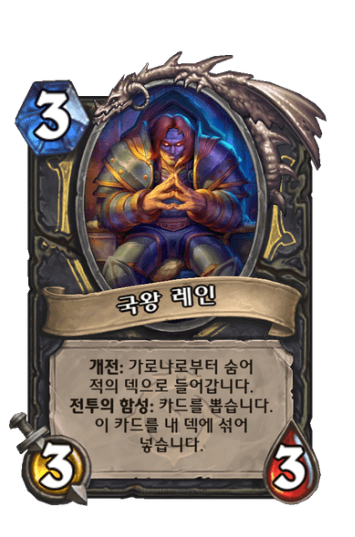 개전: 가로나로부터 숨어적의 덱으로 들어갑니다.전투의 함성: 카드를 뽑습니다.이 카드를 내 덱에 섞어넣습니다.
