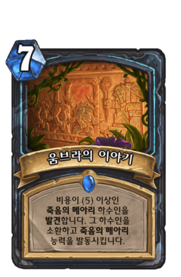 전투의 함성: 이번 게임에서 죽은 아군 하수인 다섯의 죽음의 메아리 능력을 발동시킵니다.