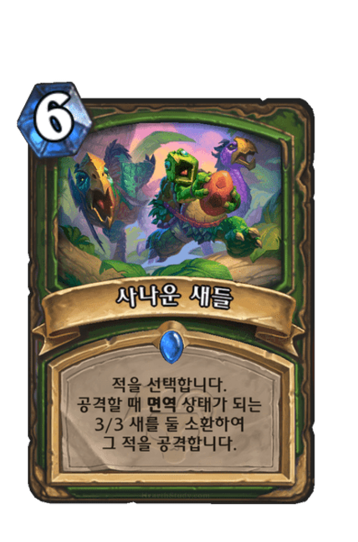 적을 선택합니다. 공격할 때 면역 상태가 되는 3/3 새를 둘 소환하여그 적을 공격합니다.