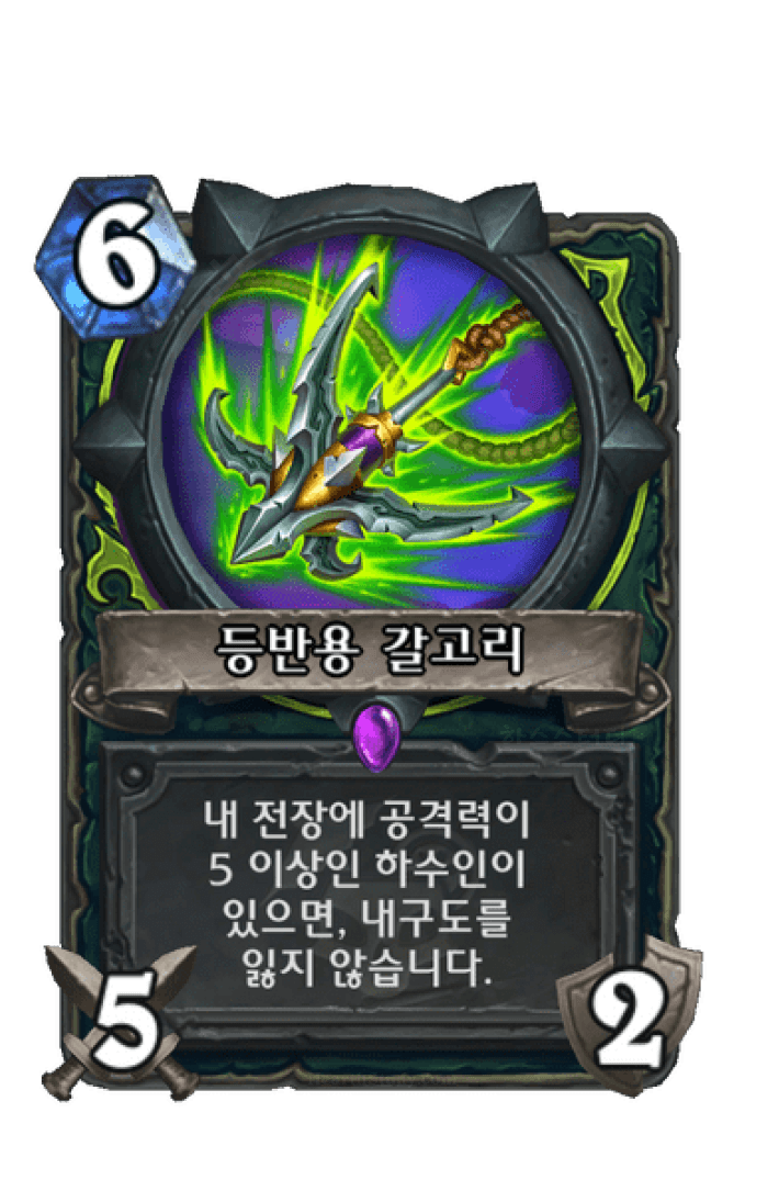 Doesn't lose Durability while you control a minion with 5 or more Attack.